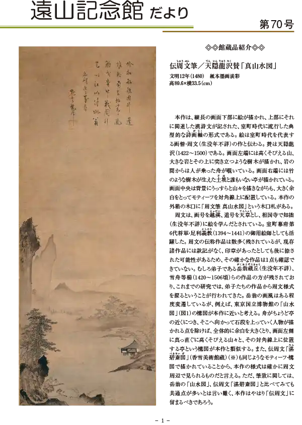 遠山記念館では、館蔵品の紹介や展覧会、イベント等の情報をまとめた冊子「遠山記念館だより」を年に2回発行しています。